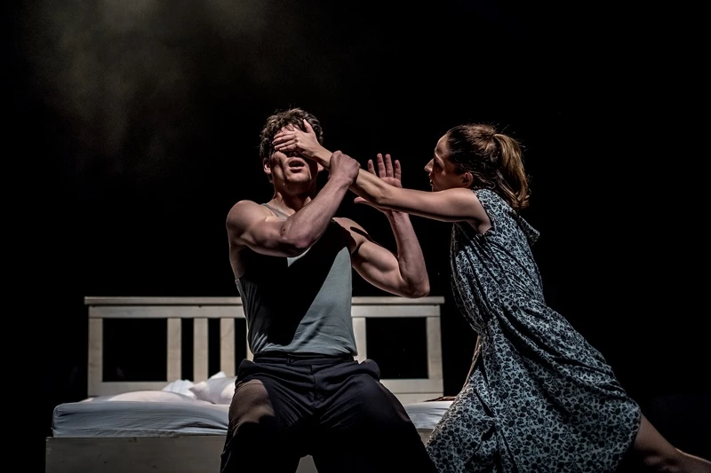 V nastudování se střídá dramatičnost a napětí s vtipem a nadsázkou. Choreografie si pohrává s proměnami. Na jevišti Nové scény, která je k uvádění tohoto titulu jako stvořená, se neustále něco posunuje a mění. Například skříň je skříní i dveřmi ap., nechybí ani principy černého divadla.