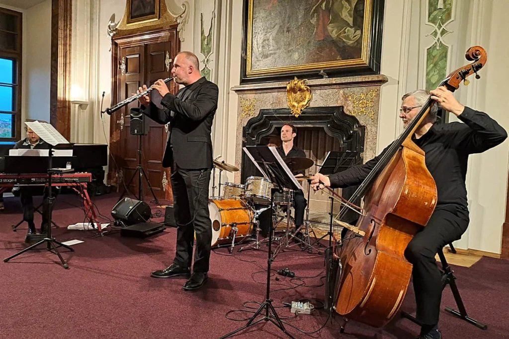 Tereziánský sál v prostorách klášterní prelatury v Břevnově dýchá barokní nádherou poloviny 18. století a zdobí ho bohatá fresková a štuková výzdoba pokrývající strop i stěny sálu. Na stěnách jsou portréty nejvýznamnějších habsburských panovníků v čele s císařovnou Marií Terezií, která zde byla dle záznamů v roce 1753 a dala tak sálu jméno. Architektura, fresky a obrazy dodávají prostoru nejen okázalou slavnostnost, ale také pro koncerty velmi důležitou výbornou akustiku, jejichž spojení obohacuje kulturní zážitky. Dramaturg BHS Ilja Šmíd se rozhodl nabídnout znalým posluchačům dobře orientovaným v hudebním dění i další směry hudby v podání špičkových interpretů, což u hobojisty Viléma Veverky a jeho TRIOplus platí měrou vrchovatou. Na koncertu 16. května nazvaném My Own Way zazněl vynikající Veverkův hoboj v artificiálním uchopení hudby klasické, jazzové i v nových kompozicích psaných přímo pro sólistu a TRIOplus, tvořené klavíristou a skladatelem Martinem Hyblerem, kontrabasistou Ondřejem Štajnochrem a perkusistou Tomášem Hobzekem. Martin Hybler je „dvorním“ skladatelem Viléma Veverky již mnoho let, hobojista od svého absolutoria na HAMU a berlínské Hochschule für Musik se vždy věnoval také hudbě současné. Jeho interpretační vývoj k moderním úpravám staré hudby či perfektnímu podání hudby přesahující hranice klasiky k art rocku a jazzu působí jako přirozený posun do dalších sfér. Skupina přátel vynikajících hudebníků a skladatelské zázemí vedou Viléma Veverku do světa širších možností, v nichž technická a výrazová virtuozita je základním předpokladem k vrcholnému výkonu a přináší především prožitek z uvolněné vzájemně se inspirující společné interpretace.