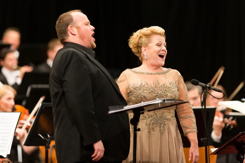 Sestava árií a předeher byla reprezentativní, originální a až marnotratně rozsáhlá. Začala u Carla Marii von Webera, pokračovala přes Beethovena a Humperdincka a první polovinu uzavřela velkou scénou Sieglindy a Siegmunda z Wagnerovy Valkýry. V druhé části zazněl Berlioz, Gounod a Massenet a pak muzikály Candide, Oklahoma, My Fair Lady, Showboat a West Side Story. Deborah Voigt, kterou české publikum dosud znalo jen z nahrávek, případně z kin z přenosů z Met jako sólistku i jako jejich moderátorku, byla přesně na očekávané hranici mezi legendou, velkou dramatickou umělkyní a pěvkyní, která už nebude lepší. Garrett Sorenson je spolehlivým pěvcem s lyrickým fondem schopným už přesahu směrem k hrdinnému oboru, sólistou v nejlepších letech. Koncert nebyl strhující ve smyslu úžasné komunikace pěvců s publikem a neslýchaných vokálních výkonů, byl však ukázkou naprosté profesionality a rozhodně i nadprůměrnosti, která na světových scénách i zcela běžným představením dává smysl – činí je plně zajímavými a dostatečně strhujícími.