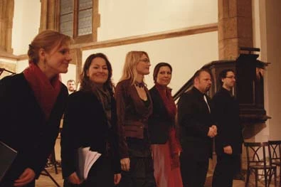 Již od prvního nástupu sboru mne zaujala propracovaná drobnokresba dynamiky a výrazu, zvláště pak působivá pianissima v úvodu. Bohužel v některých fortissimech se ukázalo, že sbor není zcela barevně vyladěný, barevně se rozpadal na jednotlivé zpěváky a nepůsobil jako celek. Ozývaly se tak hlasově nepříliš příjemné barvy. Naštěstí v průběhu večera se tyto problémy eliminovaly. Jen v závěru první části se objevila výraznější rytmická nesouhra jednotlivých složek.