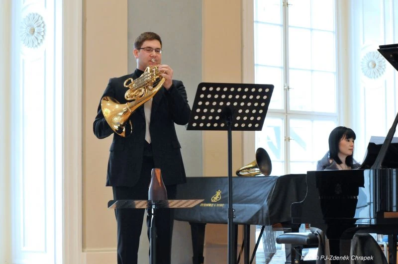 Matiné 1. 6., v předvečer pražské povodně, bylo u mně spjato s očekáváním něčeho mimořádného. Supraphonský debut hornisty Přemysla Vojty, plný moderní české hudby, se totiž náramně povedl. V Praze jej stejně jako na desce výborně doprovázela japonská pianistka Tomoko Sawano . Program byl zajímavě postaven, výsledek však ideální nebyl. Pan Vojta avizoval, že Beethovenovu Sonátu F dur op. 17 bude hrát na přirozený lesní roh. Snad chtěl zaujmout posluchače, více je vtáhnout do hudby, ale bylo to zbytečné. Přirozeně to mělo s intonačními nedotaženostmi a přefuky k libosti daleko, ale diskrepance mezi kopií původního nástroje a moderním Steinwayem byla příliš velká. Beethoven byl nakonec přes své silné kompoziční kvality nepřesvědčivý. Skvělé byly naopak Tre capricci Klementa Slavického – báječně zahraná výborná hudba! Nastavená laťka kvality byla potvrzena Třemi fantazijními kusy Roberta Schumanna, spíše výjimečný příklad, kdy je transkripce zajímavější nežli originál (v tomto případě klarinetový)! Pan Vojta mohl naplno demonstrovat svoje mimořádné tónové a technické přednosti. Závěr programu patřil kuriozitě – Proměny Sonáty op. 27 č. 2 (tedy „Měsíční) Ludwiga van Beethovena v Sonátu pro lesní roh a klavír op. 95 od Giselhera Klebeho. Nevím, co k tomu pana Vojtu vedlo, snad mít koncert v beethovenovském sevření, ale byl to omyl. Hornová literatura není tak chudá, aby na festivalu úrovně Pražského jara muselo znít takovéto podivné, často doslova hluché, zpracování původní verze. Decentní „modernizace“ slavné klavírní sonáty má jistě právo na život, ale naštěstí máme originál. S Pražským jarem se Přemysl Vojta rozloučil půvabně zahraným Nokturnem Franze Josepha Strausse, otce Richarda Strausse.