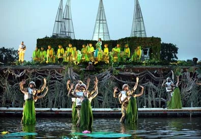 Opeře v dolnoslezské Wrocławi (Vratislavi) šéfuje dirigentka Ewa Michnik. Ve stejné funkci působila už v Krakově, ve Vratislavi založila festival Wratislavia Cantans, tamní operu vede od roku 1995. Její dirigentská aktivita je enormní, nastudovala už víc než 80 operních titulů a tvůrčí elán přenáší i do vynalézavého provozu operního domu. Pracuje velkoryse, dokázali například nastudovat celou Wagnerovu tetralogii Prsten Nibelungův a jejich inscenace Szymanowského Krále Rogera se čerstvě označuje za operní událost roku. Ewa Michnik dává opeře i sympaticky expanzivní tendence: v červnových večerech opouštějí své krásné klasicistní divadlo a okupují atraktivní vratislavské lokality. Například nejznámější moderní budovu ve Vratislavi, Lidovou halu, což je výstavní pavilon, který vystavěl roku 1913 místní architekt Max Berg a dnes je to památka UNESCO za světové prvenství v užití železobetonu. Elegantní kolos pojme až 6 000 diváků a opera tam už uvedla olbřímí produkce Aidy, Nabucca, Trubadúra i Carmen. Expandují stejně úspěšně do plenéru, na mamutím jevišti na Odře se před lety hrála Ponchielliho Gioconda a navzdory špatnému počasí ji shlédlo pětatřicet tisíc posluchačů. Letos šly vratislavské operní ambice k maximu: Efekt vodní hladiny se osvědčil, tak rozehráli velké jezero v populárním parku, jehož dominantou je nejen Lidová hala, též pozoruhodná, víc než kilometr dlouhá železobetonová pergola, mohutný ochoz obrostlý zelení. Pergola právem čeří fantazii tvůrců i diváků. Podívanou maximalisticky projektoval polský scénograf a režisér Michal Znaniecki. Je na velké projekty zvyklý, studoval v Miláně a před lety v Benátkách realizoval pouliční podívanou, do které zapojil celou tisícovku herců. V Nápoji lásky zabydlel a rozehrál asi tři hektary plochy, kterou měl k dispozici, a hlavní akcent vložil do záměru ve hře zvýraznit přírodní prostředí. Voda zůstává vodou, jezero je přemostěno a celý příběh se odehrává na vodě a ve vodě. Ví se, kolik dnů se čistila, zbavovala komárů a upravovala, aby se v ní mohly brodit nymfy i vojáci, kolik kilometrů kabelů spotřebovalo osvětlení, kolik kilogramů zátěže musely mít kulisové věže, aby se nezvrhly, jak se budovala obří leknínová kukaň, ve které byl ukryt orchestr, zkrátka zajímavé jsou i zákulisní reality, které dokázaly proměnit komorní Donizettiho operu na divácky atraktivní megaprodukci.