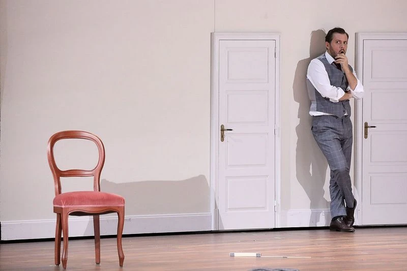 K dotažení svého produkčního záměru mu nechyběli ani herecky talentovaní pěvci těch nejzvučnějších jmen, namíchaných velmi umným způsobem s umělci mladými, ani další nepostradatelné elementy, které celkovou koncepční vizi režisérovi dotvořily. Velmi pěkně působila vzdušně pojatá scéna Johannese Leiackera, který toho sice nepoužil mnoho, zato vše použité využil dokonale. Pomohlo mu i předsunuté loutkové divadlo, které velmi vtipným způsobem dopomáhalo k přípravě okamžiků, které v Mozartově díle časově následují. Dvě bílé stěny, židle a několik doplňků do interiéru, to není výčet, který by mohl na první pohled zaujmout, přičte-li se k tomu ovšem řada drobných rekvizit, které byly po celý večer v rukou herců-pěvců, jež s nimi dokázali přirozeným a nenuceným způsobem pracovat, jednalo se o báječně promyšlenou strukturu.