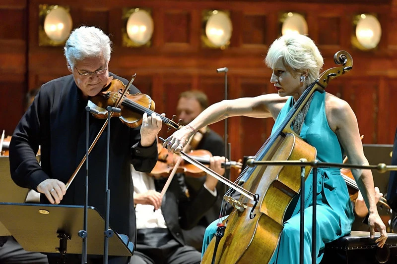 Vraťme se ale ke středečnímu možná až příliš dlouhému večeru. Pro zahřátí se duo Zukerman – Forsyth představili jako sólisté, symbolicky v hudbě Antonína Dvořáka. Nejdříve se objevila na pódiu majestátní postava Zukermana. Jistě znáte některou z desítek jeho nahrávek. Vždy jsem obdivoval jeho eleganci, příjemný, rozpoznatelný tón, temperament, dravost a virtuózní techniku obou rukou. Neprávem byl řazen za staršího Issaca Sterna a generačního souputníka Jicchaka Perlmana. Ne náhodou vznikly jeho nejlepší nahrávky v 90. letech (Mozart, Beethoven, Brahms, Bach…) a v prvních letech tohoto století. Dnes sice už jeho hra nemá někdejší temperament a tónovou naléhavost, zato elegance se prohloubila a obsahuje impozantní míru zkušeností a léty prověřenou kvalitu. Houslová Romance f moll byla v každém směru líbezná (decentní vibrato i zukermanovská glissanda!), nebál bych se označení referenční. Až empatický byl příkladný doprovod orchestru. V takovéto verzi andělská hudba!
