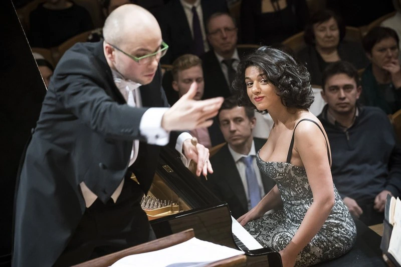 Hvězdou koncertu byla klavíristka Katia Buniatišvili, jež je tzv. „na vlně“, neboť ve světě má úspěch u posluchačů, nahrávacích firem i u novinářů. Interpretaci sólového partu Schumannova Koncertu a moll není téměř co vytknout. Gruzínka má výbornou techniku, oslňuje svým zjevem a stylově to bylo v pořádku. Bohužel jakkoliv záskok pana Vrabce je nezapomenutelný, Schumann paní Buniatišvili byl jistě atraktivní a báječný, ale zapomenutelný. Samozřejmě pakliže jej budu vnímat prizmatem mých zkušeností s jinými pianisty (Abduraimov, Andsnes, Benedetti Michelangeli, Brendel, Moravec…). O to více bude zajímavé provedení tohoto díla Janem Lisieckim na Pražském jaru (20. 5. 2017, Toronto Symphony Orchestra, Peter Oundjian). Ke klavíru rovnoprávný „doprovod“ orchestru byl v základu bezchybný. Jen občas zněly vedle sebe dvě (tempové) linie – České filharmonie a Katii Buniatišvili… Se spokojeným publikem se rozloučila decentním přídavkem – úpravou Sheep may safely graze Johanna Sebastiana Bacha (BWV 208).