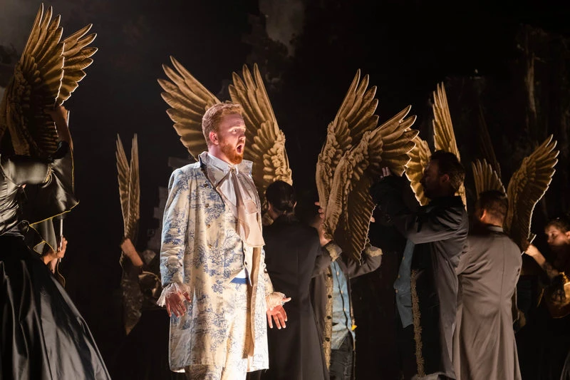 Andělské téma festivalu nicméně výrazně určila světová premiéra scénického uvedení oratoria Josepha Haydna Návrat Tobiášův, která se stala přirozenou dominantou letošního ročníku. Není bez zajímavosti, že libreto napsal bratr skladatele Boccheriniho na motivy Knihy Tobiášovy, která má své kořeny ještě v dávné Babylonii. Vztahy rodičů, syna a jeho nové nevěsty, ba i schopnost samotného vidění tohoto světa se pak rozvíjejí pod netušenými perutěmi archanděla Rafaela. Ten je téměř po celou dobu vtělen do role Tobiášova průvodce a je úsměvné, že ještě v Bibli na sebe však vzal dokonce podobu psa! Krok za krokem činí dobré skutky: Tobiášovu nevěstu zbaví prokletí a jeho slepému otci pomůže navrátit zrak. Když odmítá odměnu vyjde najevo jeho skutečná andělská tvář. Dílo hudebně nastudoval dirigent (a zároveň umělecký ředitel znojemského festivalu) Roman Válek spolu se souborem Czech Ensemble Baroque a sbormistryní Terezou Válkovou. Haydnovo dílo má mnohá nesmírně náročná sóla a dramaticky vypjaté pěvecké partie (klobouk dolů před pěvci jeho doby a Esterházyho souboru). Zřejmě právě nároky na pěvce byly už v osmnáctém století určitou obtížně překonávanou překážkou, pro niž byl počet nastudování relativně malý. Čas mnohé nezměnil. Obsazení hlavních rolí bylo i pro Romana Válka poněkud složitým rébusem, kterým se údajně zabýval celý rok. Nakonec vybral obsazení zcela špičkové: Adama Plachetku (slepý Tobit), Lucii Kaňkovou (d’Azaria), Dagmar Šaškovou (Anna), izraelskou sopranistku Shiru Patchornik jako Sáru a roli Tobiáše získal britský tenorista vyrůstající v Německu Theodore Browne. Výsledek byl skvělý. Velmi precizní, hodinářsky přesné Válkovo nastudování nechávalo výrazovou svobodu pro emotivní sólové pasáže často vrcholící závratnými koloraturami. To vše na pozadí tradičně výtečného sboru, který svým výkonem podpořil návaznost jednotlivých scén i divácky příjemnou rozmanitost večera. Oživení dobové atmosféry přinesly i baletní výstupy (choreografie Martin Šinták), bez nichž by inscenace toho typu byla evidentně neúplná. Je pochopitelné, že tvář večera byla dána režií Tomáše Ondřeje Pilaře, který byl i autorem stylově dokonalé scény vycházející z barokních krajinomaleb, v jejímž nostalgickém prostředí lesa či zahrady dýchá hedvábný lesk módy 18.století (kostýmy Ivana Ševčíková Miklošková). Upřímně řečeno, samotný příběh a zřejmě především libreto chudé na dramatické momenty režisérovi jeho úlohu nijak neusnadnilo. Myšlenkově a citově bohatou podobu inscenace získala díky režisérovu ryze osobnímu přístupu k tématu: „Pod zdánlivě prostým dějovým půdorysem Haydnova oratoria se skrývá hluboké a temné jezero symbolů, v němž se dá rybařit na udici snů a lovit jeden archetypální obraz za druhým…“ napsal v programu. Haydnovo oratorium tak zasadil do divadelní reality, která však ve své finální podobě realitu běžného příběhu emočně a eticky přesahovala. Pilařovu režii výtečně podporoval světelný design Tomáše Příkrého. Kromě spodního nasvícení postav, které evokovalo obvyklá světla rampy barokního jeviště, hrály paprsky výraznou roli v dějově zlomových dramatických okamžicích.