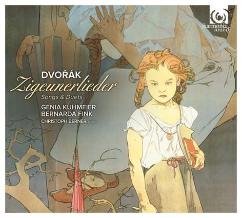Těžko si představit v případě zahraničních umělců ideálnější interpretaci skvostů Dvořákovy vokální tvorby, než jakou zachycuje tato novinka firmy Harmonia mundi. Dokonce není snadné si vybavit příliš mnoho lepšího i v podání českých pěvců. Hudebně tu jde v prvních dvou třetinách o uměřeně bystré až jiskřivé podání – a je až překvapivé, jak správně a zřetelně tady zároveň zní čeština. Pravda, o mezzosopranistce slovinského původu je známo, že z let pražského pobytu dobře rozumí a hovoří česky, ale u rakouské sopranistky by se přece jen daly čekat v dikci větší problémy či nepřesnosti. Genia Kühmeier , která zpívá sama Cikánské melodie a pak i sopránový part v Moravských dvojzpěvech , je mozartovská pěvkyně s pěknými mezinárodními zkušenostmi a úspěchy z posledního desetiletí, zejména operními. V písňovém cyklu je potřeba se do jejího jasného hlasu chvíli vposlouchávat, zejména na začátku totiž zní v několika nejvyšších tónech o něco úžeji a tím i pronikavěji, než jak by to bylo stoprocentně krásné. V duetech jdou však všechny zbytky pochyb stranou – s Bernardou Fink vytvořily tandem, jehož dva hlasy se krásně pojí, tandem, který má na věc stejný interpretační názor, jen nepatrně ovlivněný operním zpíváním, a který společně jako jeden člověk nejen zpívá, ale také dýchá a jemně vibruje. V tomto duchu ostatně působí i stejně cítěný a vyladěný klavírní doprovod, komorně pozorný, mnohotvárný, zajímavý. Právě Moravské dvojzpěvy – se svým pozitivním nábojem a čistotou souzvuků i výrazu, se svou zdrženlivou uměřeností vzdálenou přehnanému juchání či vzájemnému překřikování, se svými jemnými detaily a decentní dynamikou – působí díky interpretaci a komplexnímu zvuku jako přirozený středobod i vrchol nahrávky. Pak ovšem ještě následují Biblické písně – a jejich výjimečný náboj, vtělený do hudby skladatelem, i nálada, která je dílem pěvkyně a pianisty, nemohou nechat chladným. Bernarda Fink dává totiž písňovému cyklu mimořádně upřímnou a hlubokou intimitu a zejména některými rozechvělými tóny se přesně a až odzbrojujícím způsobem dotýká jeho podstaty. Nepřehrává, nepřepíná a to, že čeština není její mateřštinou, prozrazuje jen lehce a na několika málo slabikách. Možná by na některých místech přece jen byl příjemnější rovnější tón. Biblické písně se v cítění Bernardy Fink uzavírají bez zbytečného patosu, zanechávají dojem větší vzdušnosti a lehkosti než u mnoha jiných interpretů či interpretek, ale vůbec přitom nezastírají zbožnost, která za jejich vznikem stála – naopak, ta je v sympaticky prostém přístupu přirozeně přítomna. Obal desky upoutá detailem z Muchova plakátu užitým pro celý podklad. Je to rozhodně méně obvyklé než červenobílé národní kroje, není to úplně výstižné a k Biblickým písním možná vlastně ani moc vhodné, nezapomeňme nicméně, že vydavatelem je francouzská firma. Je to řešení jedinečné, odlišující titul od všech jiných na první pohled.