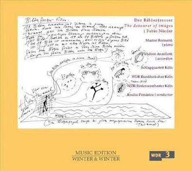 Fabio Nieder je klavírista, dirigent a skladatel (mj. studoval u Lutoslawského a Xenakise), dnes vyučuje kompozici na konzervatoři v Amsterdamu a jeho skladby uvádějí prestižní festivaly. Bilderfresser (Požírač obrazů) je multimediální dílo, vzniklé na objednávku Západoněmeckého rozhlasu (WDR). „18 obrazů se chvěje ve vakuu – jako hvězdy na nebi. Je ticho. Thümmel dává obrazům jména. Každý obraz, který pojmenuje, spolkne. Když snědl 17 obrazů (osmnáctý obraz nemá jméno, protože to je jeho vlastní obraz!), padne s plným žaludkem do vody. Pod vodou své obrazy opět najde (Rej svobodných obrazů pod vodou).“ Tak své dílo popisuje skladatel. Jednotlivé obrazy se jmenují Moře, Bota, Hvězda, Cesta, Dům, Saturn, Ptáček, Oči, Tečka, Strom, Noc, Zvířátko, Terst, Mrtvá žena, Město, Mrtvý přítel, César Sophianos – a poslední obraz Viktor von Thümmel . Požírač obrazů je centrální scéna hudebního divadla „Thümmel aneb vymazání slov“. Malíř Viktor von Thümmel (1886–1949), syn obchodníka z Vídně, vyrůstal v Terstu (odkud pochází i Nieder), jméno si poitalštil na Vito Timmel. V průběhu let (pravděpodobně jako následek alkoholismu) začal trpět duševní chorobou. Jeho malířské dílo je jejím odrazem, ale podobně spletité kompozice pocházejí i od surrealistů. Ty úplně poslední, které Nieder použil, se naopak podobají dětským kresbičkám. César Sophianos (Cesare Sofianopulo, 1889–1968) byl původem Řek, básník a jeho obrazy připomínají Moneta, ale také třeba masky Felliniho filmů. V Niederově díle jsou podle skladatelových slov ve vztahu jako Faust a Mefisto. Niederovo hudebně-divadelní dílo má být scénicky uvedeno roku 2015 v Salcburku. Zadavatel skladby, Západoněmecký rozhlas v Kolíně n. R. (WDR), vydal tedy zatím jednu část, Požírače obrazů, jako CD. Je to jistě záslužné, potíž je, že podobná díla jsou koncipována ve spojení s vizuální složkou. Schází-li, je vnímání naprosto odlišné, neúplné, a nemůže ani plně uspokojit, zapojení vlastní fantazie je pouze slabou náhražkou. V partituře hraje velkou roli „ticho“, co s ním však, neznáme-li jeho smysl. Při koncertantním provedení, jehož výsledkem je tato nahrávka, je možno vidět alespoň hudebníky, u audiopřístroje schází i to. Bohužel. Na druhou stranu zvědavost, přijít na hudební princip jednotlivých, tak prostě pojmenovaných obrazů, nutí se k nahrávce stále vracet. Až přijdeme na to, že je skutečně podstatně jiný obraz Boty a jiný Mrtvého přítele… Fabio Nieder ví, proč a co dělá. Doufejme, že mu to s tím Salcburkem vyjde.