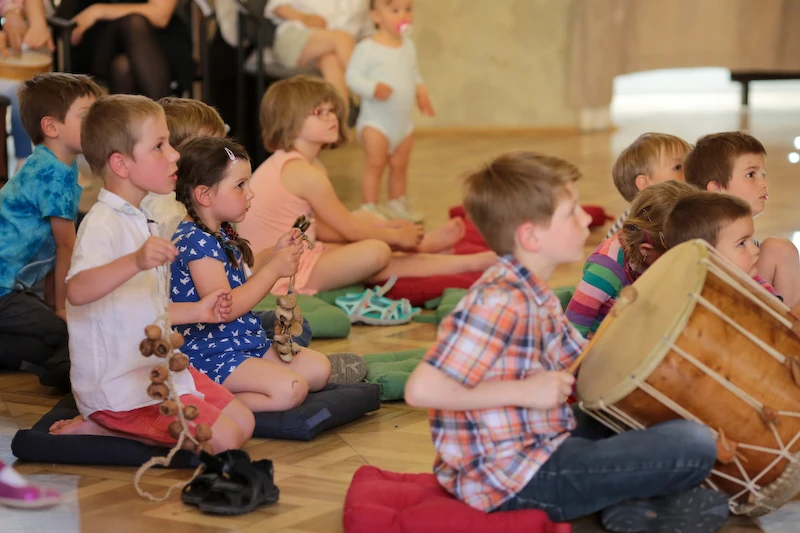 Závěr patřil Michaelovi Pospíšilovi a jeho programu Cesta (s) Polem. Setkání s touto mimořádně zajímavou osobností byl pro děti nepochybně velkým zážitkem, stejně tak ukázka mnoha nástrojů (varhany, niněra, pošetky, šalmaj, mandolína atd.) a plynulé prolínání slova, hraní a zpěvu. Učit se zde měli všichni, malí i velcí, což si úplně nejsem jistá, že se podařilo. Přiznám se, že na můj vkus byla dílna poněkud chaotická, že bych uvítala skutečný, nikterak nahodilý nácvik alespoň jedné písně (v prvním ročníku Piccoli jsme na Pospíšilově dílně dostali noty a zpívalo se mnohem víc), zkrátka trochu víc řádu. Nicméně ten, kdo tohoto hudebníka nezná, ani jeho bohatý instrumentář, byl z programu asi trochu jako v Jiříkově vidění a mohl odejít ve spokojeném okouzlení.