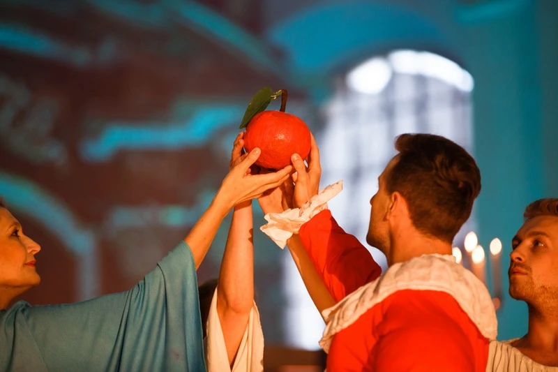 Znojemské publikum má každoročně příležitost zhlédnout produkci připravenou přímo na objednávku festivalu, v minulých letech to byl například pořad sestavený z duchovních děl Heinricha Schütze, komická Rameauova opera Platée, nebo Mozartův Don Giovanni, vždy v podání rezidenčního Czech Ensemble Baroque pod vedením Romana a Terezy Válkových. „S Válkovými mě pojí dlouholeté pracovní přátelství,“ pokračuje Laďka Košíková za zvuku ladění muzikantů před druhou polovinou Cavalieriho Rappresentatione. „Vedu na jejich letních kurzech v Holešově lekce barokních tanců pro zpěváky a instrumentalisty, připravili jsme spolu spoustu inscenací. A teď jsme se potkali při práci na Cavalieriho Sváru duše a těla. Ačkoliv, svár…? Správný překlad je Představení o duši a tělu, ale chápu, že dnešní doba vyžaduje ostřejší protiklady… A navíc téma sváru dává docela dobré inscenační vodítko. Protože kdy vlastně začal svár mezi duší a tělem? Muselo to být v okamžiku, kdy Eva dala ochutnat Adamovi jablko ze stromu poznání dobra a zla. Od té doby jsme nastoupili životní pouť, řešíme pozemské problémy, odoláváme nástrahám pokušení poživačnosti, lenosti. Ale bez neustálého boje dobra se zlem by náš život neměl smysl na této zemi, ne? No neměl. Začala jsem se zabývat symbolem jablka, symbolem hříchu, pokušení, ale i života. Obklopila jsem se literaturou a hledala, jak se na dualitu duše a těla dívají Aristoteles a Platón nebo i Pavel z Tarsu, který píše Korintským: ‚nevíte, že vaše tělo je chrámem Ducha Svatého ve vás, kterého vám dal Bůh, a že už proto nepatříte sami sobě?‘ Dostala jsem se i ke Ztracenému ráji Johna Miltona, což je skvost britské literatury z počátku baroka. Ta kniha vyšla zhruba v době, kdy se odehrála premiéra tohoto oratoria. Takže jsem přečetla celý Ztracený ráj v Jungmannově překladu a právě tam jsem našla nádherné scény, obrazy, ze kterých jsem částečně vycházela. Snad se mi ty správné obrazy podařilo najít. To už musí posoudit diváci,“ uzavírá Laďka Košíková.