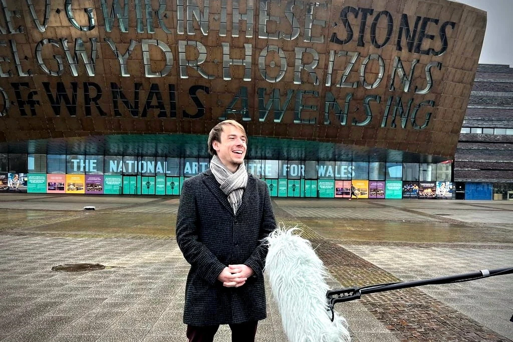 Wales Millennium Centre je multifunkční budova využívaná pro kulturní události – operu, koncerty, muzikál, kabaret – i jako sídlo velšské BBC (v budově propojené s Millennium Centre) a BBC Orchestra of Wales. Návštěva centra nás velmi zajímá. Nejen pro její architektonickou výjimečnost, ale zejména proto, že je sídlem Velšské národní opery, jejímž uměleckým ředitelem je český dirigent Tomáš Hanus. Působí zde od roku 2016, spolupráci mu nabídl tehdejší ředitel opery David Pountney. Naši skupinu, která zahrnuje i ředitele Pražského jara Pavla Trojana, jeho zástupkyni Katarínu Fišerovou, dramaturga Josefa Třeštíka a donátory festivalu Karlu Lažanskou, Natálii Bočorišvili a Tomáše Kubíka, provází okolím i interiérem budovy ředitel orchestru Velšské národní opery Peter Harrap. Na první pohled muž, který je zvyklý mít vše pod kontrolou, a také bývalý muzikant (trombonista), se kochá naším ohromením a s hrdostí nám ukazuje všechna zákoutí této nebývalé budovy – vstupní halu s umně vedenými schodišti, chodby minimalisticky ozdobené sloupy a svítilnami připomínajícími svou černotou sloje uhlí a hornické kahany, koberce pod našima nohama také svou barvou upomínají na hornickou minulost. Vede nás do zázemí budovy, procházíme kancelářemi s výhledem na přehradní jezero Cardiff Bay a chodbami, na kterých visí velké fotografie z operních představení. Piková dáma, Jenůfa, Billy Budd, Mistři pěvci norimberští, Lulu… Vnímáme promyšlenost scény, kostýmů, barev… a těšíme se do hlavního sálu.