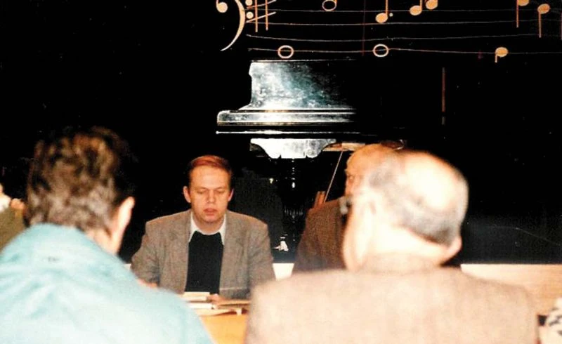 S ČF jsem se nakonec zapletl až v první polovině 90. let – po abdikaci Jirky Bělohlávka (…) nastalo v ČF počátkem 1992 interregnum nejen šéfdirigentské (Albrecht měl nastoupit až 94/5), ale i dramaturgické, protože si Jirka dělal dramaturgii sám. V této situaci mne volal tehdejší ředitel ČF Jaroslav Tvrzský (varhaník a předtím dlouholetý prac. a pak ved. provozu ČF, obětavý člověk, který byl v DU, jak se dům tehdy jmenoval, k zastižení v kteroukoliv denní či noční hodinu) do elektroakustického studia GMEB [Groupe de Musique Expérimentale de Bourges] ve francouzském Bourges, zda bych jim nepomohl. Dost se to ve mně pralo – na jedné straně jsem byl s orchestrem po dlouholeté spolupráci režisérské (cca od 1975, čili cca 17 let a desítky nahrávek včetně třech oper atd.) i autorské (do té doby mi Neumann dělal Exupéryho a ZL [Země lidí], Bělohlávek připravoval na IX. 92 pro Berliner Festwochen Portu coeli) ve výborných vztazích – s půlkou orchestru jsem si tykal a s řadou lidí jsme se měli opravdu rádi. Nadto nebylo ještě tak dlouho po převratu a euforické přesvědčení pomoci novým poměrům ze všech sil na nohy (nadto „rodinnému stříbru“, jak se tehdejší terminologií říkalo, v jeho problémech) ve mně, a nejen ve mně, stále ještě rezonovalo. Ale zároveň mne varovala vznícená atmosféra v orchestru, rozpolceném na dva zhruba podobně početné tábory (jejich poměr postupně kolísal – stoupenci Albrechta, kteří si říkali „Áčkaři“, byli průběžně početnější a stoupenci Bělohlávka, poté už jen odpůrci Albrechta, „Béčkaři“, spíše razantnější, krom toho v orchestru bylo asi 10 % programově nezúčastněných) a měl jsem i obavu, jak bych časově sladil své závazky na FF, které jsem určitě nechtěl šidit, i četné další s tímto novým, a ne zrovna lehkým úkolem. Rozhodla audience u tehdejšího ministra kultury Milana Uhdeho, který mne obeslal (nevím, kdo mne tehdy doporučil a zda mu za to mám být vděčný!) a požádal, abych funkci dramaturga ČF vzal a pomohl tak toto interregnum do Albrechtova plného nástupu překonat. Coby slušně vychovaný chlapec (a naivní vlastenec či co), který tradičně moc neuměl říci ne, jsem mu nakonec tuto pomoc slíbil.