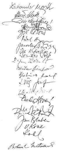 Dáváme tímto laskavě všem hudebním umělcům, kteří se budou chtít svým podpisem připojit k tomuto prohlášení, na vědomí, že podpisové archy jsou k dispozici po celé září v Nadaci Bohuslava Martinů, 2. patro, Kinského nám 3, Praha 5.