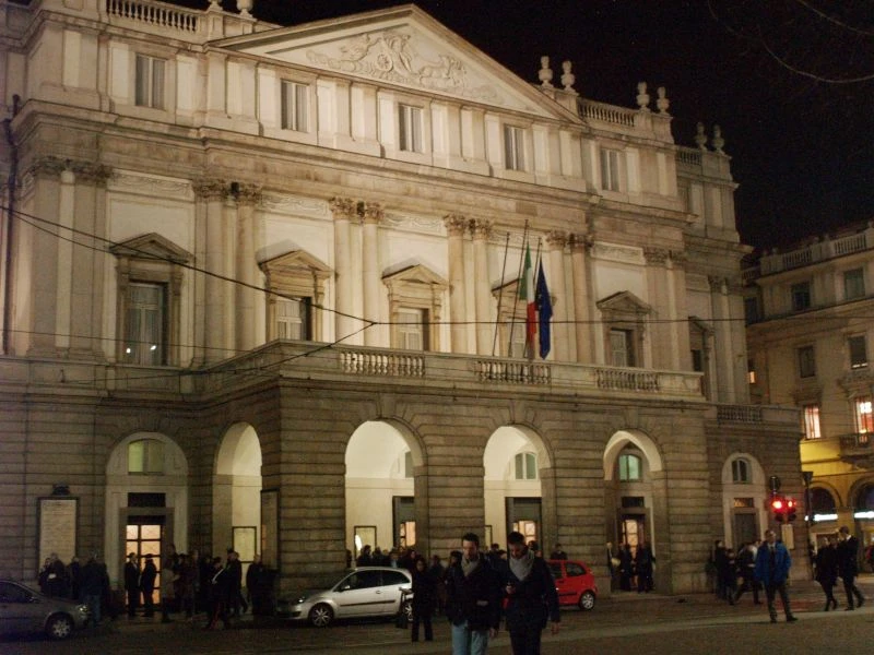 Milánské divadlo La Scala své jméno odvozuje od toho, že bylo postaveno roku 1778 v místech, kde býval kostel Santa Maria alla Scala – přičemž scala znamená schodiště nebo žebřík. Patří tradičně mezi několik nejprestižnějších světových operní scén. Pro umělce i pro diváky. U mikrofonu byl šéf tiskového odboru divadla Carlo Maria Cella. Směřují k němu dotazy týkající se programu i finanční stránky provozu La Scaly.