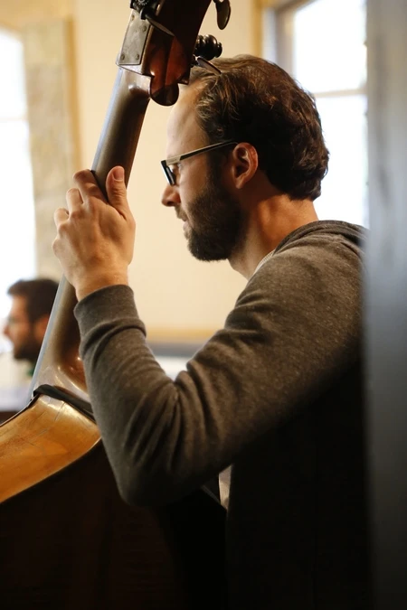 Tomáši, co je Pénte? Projekt Pénte se začal rodit před rokem a půl v Berlíně, kde jsem rok studoval na Jazz Institute Berlin. Poznal jsem tam hodně zajímavých muzikantů a vznikl i materiál pro tento kvintet, který jsem v rámci závěrečné práce nacvičil a obhajoval před porotou. Vznikla i koncertní nahrávka a ten samý materiál jsme právě v Sonu v září natáčeli. V kvintetu jsou 3 němečtí hudebníci – saxofonistka Natalie Hausmann, houslistka Fabiana Striffle, klarinetista Markus Ehrlich – a dva Češi, violoncellista Šimon Marek a já na kontrabas.