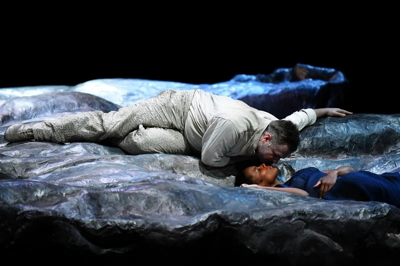 Vraťme se ale k Aidě, která ukončila provizorní sezonu 2016/17. Verdiho snad nejúspěšnější operní dílo je často koncipováno jako cosi mezi uměním a kýčem. Příběh k tomu jistě svádí, před zhruba 100 lety se ve veronské aréně představila tisícovka figurantů včetně koní, palem, atd. Jsou však i režiséři, jako například Wieland Wagner, kteří si uvědomovali problémy: „Jak se dá tohle dílo realisticky inscenovat, když si uvědomíte, že tahle opera končí ve vězení o několika čtverečních metrech, kde dva lidé, kteří sotva lapají po vzduchu, zpívají půlhodinový milostný duet.“ Pro řeckého divadelního režiséra Stathise Livathinose to byla první hudební režie a i on měl výhrady: „Aida je totálně anti-heroická. Milostné iluze jsou jednou z nejvíce působících aspektů této opery“, říká Livathinos. On ji pojal celkem konsekventně podle počtu aktérů na jevišti: scény s milostným trojúhelníkem jsou představeny jako intimní drama a naproti tomu pro sborové pasáže mohlo být jeviště dvakrát větší, v některých momentech se tam mačkalo 120 figurantů. Livathinos se nebál ani humoru, v podivné choreografii mávají vlaječkami, čiší z nich radost, prostě vypadají spíše jako účastníci prvomájových pochodů na Václaváku za starých časů než jako Egyptský lid. Stylové kostýmy Andrea Schmidt-Futterer ve světlých barvách byly velmi vydařené a jednotná výprava Berlíňana Alexandra Polzina byla sice funkční, ale až příliš chudá.
