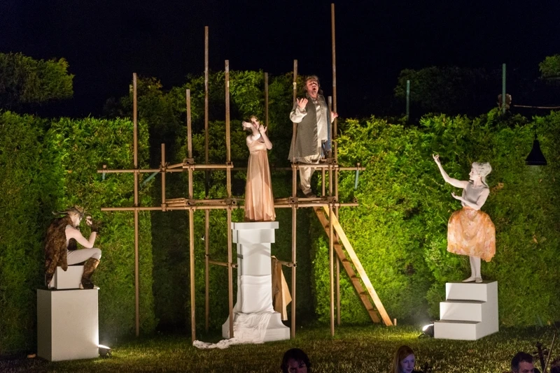 Barokní večer na rokokovém zámečku nabízí publiku víc než jen divadelní představení. Kučerovi pojímají tuto kulturní nabídku jako mimořádné večerní otevření svého domu, umožňují prohlídku zahrad, expozice i části soukromého patra, chystají občerstvení, hrají roli hostitelů a zcela autenticky jimi jsou. Samotnému programu, který tentokrát začínal teprve hodinu a půl před půlnocí, předcházejí drobné hudební a divadelní produkce a akce v zahradách i v zámku – site specific art. Sbor litomyšlské pedagogické školy, který se na nastudování opery podílel, tak například v rámci navození atmosféry shromažďujícímu se publiku několikrát zazpíval krátkou renesanční skladbu, mezi návštěvníky volně procházely a stylizovaně s nimi komunikovaly kostýmované postavy a ukázku svého vystoupení zakomponovali do vstupního ceremoniálu před zámkem pro operu angažovaní akrobaté a tanečníci.