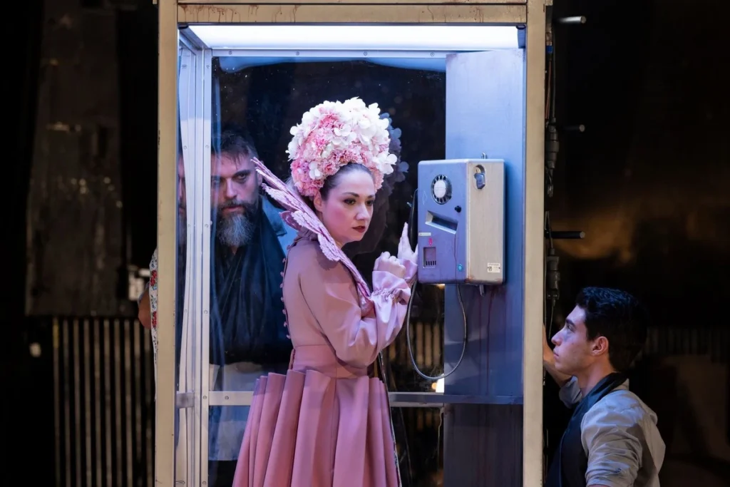 Scénografie Lucie Škandíkové působivě zcela odhalila technické zázemí jeviště a zvýraznila jej jediným scénografickým doplňkem, jímž je teď už v podstatě starožitná telefonní budka. Měla-li být jediným spojením s okolním světem, pak na mě nepůsobila příliš přesvědčivě. Zajímavější byla jako potencionálně klaustrofobický prostor pro co nejvíc účinkujících. Kodályův úvodní mužský sbor Katonadal zpívali zbědovaní vojáci v roztrhaných šatech. Stejně kostýmovaného Modrovouse a jeho Juditu režisérka doplnila o šest tanečních párů (kostýmy Linda Boráros). Judita, kterou si Modrovous přivádí do svého tajemného hradu, vstupuje vyparáděná do starorůžových řekněme svatebních šatů zdobených folklórními barevnými stuhami s výraznou „korunou“ (čepením). V podstatě proti Modrovousově vůli odemyká dveře šesti tajemných hradních komnat a postupně utěšuje nové a nové Modrovousovy předchozí ženy (ztělesněné tanečnicemi) a trvá i na otevření té nejtajemnější sedmé komnaty. Modrovous vysílen umírá, ale Kodályovy Tance z Galanty jej probouzí, on a Judita je v objetí vesele pozorují. Mužský princip obohacený o princip ženský došel naplnění. A tak se ptám. Zbylo něco z té hloubky a tajuplnosti Bartókovy opery, když jsme ji pozakryli Kodályovými tanci a zakončili ještě jedním jeho sborem, večerní písní Esti dal? Pomohla ta klopotná dramaturgická koláž jejímu vyznění? Nemyslím si to. Večer spoluzachraňovala součinnost orchestru Moravského divadla vedeného jedním z našich nejlepších operních dirigentů Petrem Šumníkem, který hudební složku inscenace nastudoval na vysoké úrovni. Královnou večera byla Barbora Řeřichová jako Judita a také Jiří Přibyl se popasoval s těžkým partem Modrovouse na velmi dobré úrovni. Spolupracoval balet a mužský sbor Moravského divadla (choreografie Daniela Špinar a Tono Ferriol, sbormistryně Lubomíra Hellová), autorem light designu byl Karel Šimek.