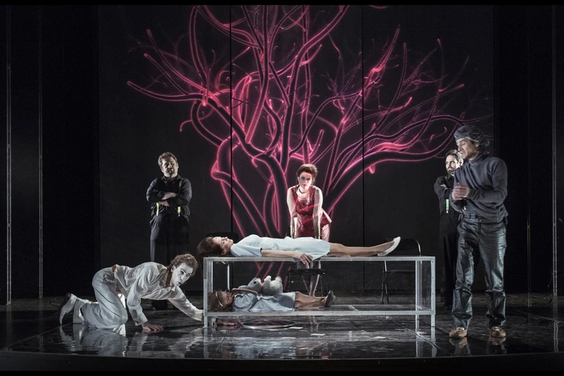 Představení je úchvatnou podívanou. Rocc, který je zároveň i autorem scény a spoluautorem kostýmů, si dal záležet na vizuální složce, využívá lesklých povrchů podlahy a velikého zrcadla, které dominuje pódiu, k odrazovým efektům, přibírá i barevná světla, zadní stěny otočných dílů zrcadla se mění v projekční plochy a videoprojekce (Lukáš Medek) je součástí děje i inscenace. V titulní roli se na jevišti potkávají tři interpretky – operní pěvkyně Tereza Merklová-Kyzlinková ztvárňuje solidní, pravidly komerčního světa se řídící vývojářku, „alternativka“ Gabriela Vermelho je v opeře za pudovou feminitu, v dětské roli je obsazena Julie Šebestová. Podstatné je, že opera i inscenace jsou zjevně výsledkem mnohavrstevné spolupráce lidí, kteří se navzájem znají, a znají i kontexty svých aktivit, což se promítá nejen do koncepce některých rolí (konkrétně svěřených Gabriele Vermelho a Janu Mikuškovi), ale také do volby hudebního materiálu, jeho zpracování a do obsazení doprovodného ansámblu, v němž je vedle klavíru, akordeonu, kytary, violoncella, dvou fléten a pozounu ještě preparovaný klavír a početná skupina bicích (autorem hudebního nastudování je Ondrej Olos).