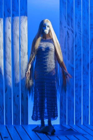 Auditorium pro necelé tři stovky diváků a tomu odpovídající malé jeviště a malé orchestřiště umožňují a dovolují v Bielu z diváckého hlediska pouze velmi kontaktní a prvoplánovou scénickou realizaci, která nemůže nabídnout příliš iluzivnosti a kouzel. Zpěváci jsou doslova pouhých pár metrů od publika, vše je zřetelné. V tomto konkrétním případě je to spíše výhodou, využitelné prostředky se potkávají s uměleckým úmyslem dobře. Výprava s režií jsou v jednotě. Lyrickou pohádku vizuálně přiměřeně konkretizují, na divadelní fantazii přesto úplně nerezignují. Kostýmy odkazují kamsi k folklóru, švýcarskému samozřejmě: Vodník je lesním mužem z prostředí masopustních figur, Rusalka s neživě modrým obličejem ani ženou, ani rybou. Na jednoduché scéně hodně pomáhají světla, ale impresionismu či symbolismu v tomto pojetí mnoho není, být nemůže. Je to nicméně řešení legitimní. Lucie Kaňková a Aram Ohanian, foto Sabine Burger