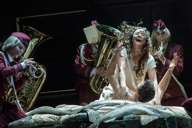 Německá opera v Berlíně v koprodukci s operou v Oslu koncem ledna uvedla premiéru Šostakovičovy opery Lady Macbeth Mcenského újezdu. Režisérem inscenace je Nor Ole Anders Tandberg a hned na začátek je nutno říci, že mě jeho pojetí příliš neoslovilo. Vedle propracované detailní práce na vykreslení charakteru hlavních postav a několika zajímavých nápadů, které zvýrazňují účinek celého díla, naservíroval očím diváků řadu momentů balancujících na hraně nevkusu a trapnosti. Scéna brutálního obtěžování a znásilnění Aksiny, doprovázená rozličným sebeukájením sboristů pomocí těl mrtvých ryb se přežít dala, policejní tanec s žehlícími prkny a žehličkami, které nenašly zdroj tepla v elektrické síti ale v trenkách strážců zákona, již k hlubokému zamyšlení vedla. Vykreslit sexuální a drastický obsah Šostakovičova zdrcujícího díla, jehož libreto vzniklo dle novely Leskova, by šlo jistě i jinak. Výtečným nápadem bylo zapojení orchestru do dění na scéně. Čtrnáctičlenná sestava hráčů na žesťové nástroje byla zdrojem strhujícího účinku zvukové masy, která dirigentovi Donaldu Runniclesovi vypomáhala bezezbytku zaplnit akusticky perfektní prostor Deutsche Oper během všech orchestrálních meziher. Krom pochodů ve formaci skutečné kapely se muzikanti účelným a chytrým způsobem integrovali do jednotlivých scén, skladatelova hudba tak korespondovala s jejich chováním na pódiu.