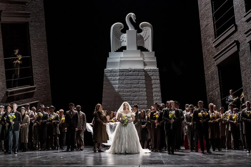 Původní inscenaci známého amerického režiséra Davida Aldena z roku 2018 (jde o koprodukci s Operou Vlaanderen) obnovil letos v Royal Opera Covent Garden anglický režisér Peter Relton (sedm představení, 19. 4.–14. 5. 2022). Při prvním uvedení působilo Aldenovo pojetí poněkud anachronisticky (ač v dějinách wagnerovské scénografie není inscenace Lohengrina s válečným pozadím neobvyklá). Za poslední čtyři roky se však hodně změnilo: opět jsme se ocitli ve zmítané Evropě ohrožené tyranií, a Aldenův prozíravý pohled na operu, viděný prismatem prostředí rozvráceného válkou, nalezl nyní novou, znepokojivou odezvu v současných událostech.