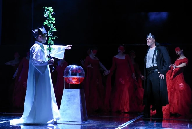 V roli Macbetha se obdivuhodně představil Pavel Klečka, kterého jsme častěji vídali v rolích komických a rozsahem menších. Na jeho působivě koncentrovaném pěveckém a hereckém výkonu bylo jasně patrné, že věnoval soustředěné přípravě role veškeré své úsilí. Lady Macbeth zpívala Csilla Boross, která má roli zažitou po pěvecké stránce. Ke stálé dynamické tenzi jejího objemného hlasu si dovoluji mít výhrady, protože se domnívám, že zřejmě měla nepříliš kladný vliv na vibrato i na slyšitelné přepojování rejstříků. (V této roli můžeme postupně vidět ještě další tři alternantky.) Podobné námitky mám také k pěveckému ztvárnění role Macduffa Paolem Lardizzonem, jehož svěží mladý hlas nemá zapotřebí být natolik přepínán, aby to ublížilo jeho barvě. Role Banca se ujal František Zahradníček, který odvedl kvalitní pěveckou a hereckou práci. Výkon sboru byl v rámci této silové inscenace o to víc mimořádný, že sbormistr Zdeněk Vimr dokázal v rozsáhlých sborových partech najít místa výrazně ztišená a vroucná, podobně jako představitelka epizodní role Dvorní dámy Lady Macbeth Radka Sehnoutková.