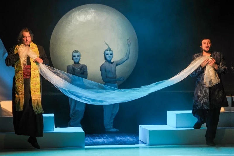 Režisérka vnesla do jednání postav zvláštní gestické prvky, které vyvrcholily v Lejlině vyprávění o tom, jak zachránila neznámého muže (Zurgu- jak se ukáže později). Tento do detailů vypracovaný skurilní výjev se vyděloval z inscenace svou choreografickou uzavřeností do sebe. Zurga v podání Andrije Shkurhana zpíval naplno, nepodařilo se mu však vytvořit jevištní postavu ani v nejmenším- stál, pózoval, sevřel si hlavu v dlaních. Nadir jako by sem zabloudil z jiné opery, a tak vztah těch dvou přátel na jevišti vůbec nevznikl. Znamená to, že podstata celého problému – přátelství dvou mužů, které naruší vztah k téže dívce (kněžce Lejle), zůstala vlastně nevyslovena. Na jevišti stály matné postavy a vedle nich sbor, který zpíval od počátku ve forte a navíc v prvním jednání málo pružně reagoval na dirigentova gesta. Občas režisérka zadala sboru jednotný úkol – rozsévání růžových květů pro ženský sbor, manipulace s rudými šálami pro sbor smíšený. Postupně se souhra sboru (sbormistryně Anna Novotná Pešková) s orchestrem zklidnila a po hudební stránce proběhla druhá premiéra, o níž píšu, velmi dobře. Sólisté zvládali své party s jistými obtížemi (Lejla začíná koloraturami a postupně se rozezpívává až do téměř dramatických pasáží s náročnými výškami), také Nadirův part vyžaduje plné nasazení příjemného tenoru Sergeye Kostova. Úloha velekněze Nurabada byla v režijním výkladu zcela nejasná a nevýrazná. Na druhé premiéře zpíval tuto roli Josef Kovačič.