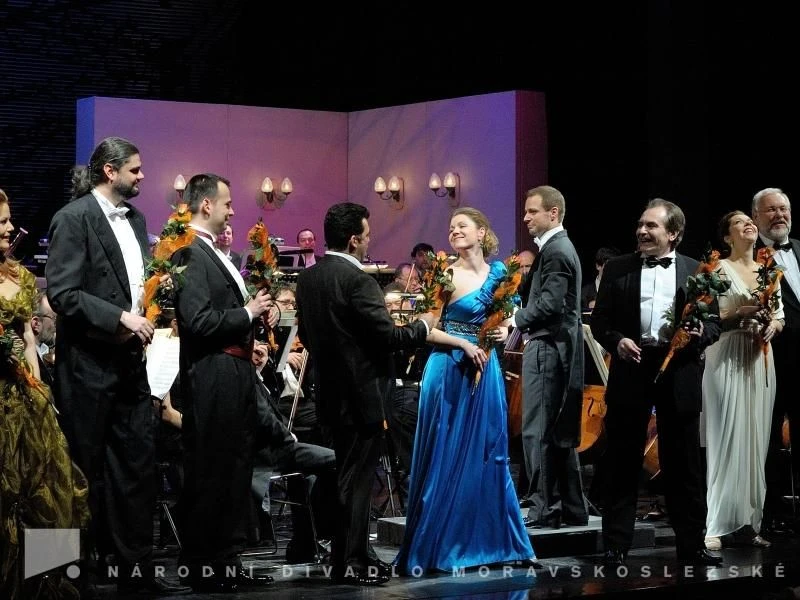 Tečkou za první polovinou večera byla scéna Rigoletta a Gildy z Verdiho Rigoletta v nastudování půvabné Kateřiny Kněžíkové a zvláštního hosta večera, ruského barytonisty Borise Statsenka . Paní Kněžíkové patřily po vstupní obligátní předehře k La Traviatě i první okamžiky druhé poloviny večera, když se snovou cudností a bez zbytečných afektů přednesla objektivně, svému věku odpovídající scénu a árii Violetty Valéry z I. dějství Traviaty. Ostravský basista slovenského původu Martin Gurbaľ důstojně obhájil domácí barvy v árii Giovanniho da Procidy z 2. aktu Sicilských nešpor a připravil publikum na opětovné setkání s Frédérique Friesse v árii Amelie z 1. jednání Simona Boccanegry . Verdiovské tenoristy onoho večera reprezentoval nejprve Luciano Mastro , který vydařený a jižansky vřelý výstup v recitativu a árii Riccarda z 3. aktu Maškarního plesu ozdobil jevištně sebevědomým, mediteránně rozpustilým vystupováním. Hned dvakrát účinkovala ve druhé polovině večera, v obou případech strhujícím způsobem, ruská sopranistka Olga Romanko , nejprve v Leonořině árii ze 4. jednání Síly osudu , podruhé ve scéně z 1. aktu Otella s italským tenoristou Gianlucou Zampierim , který bohužel pěvecky zůstal ve stínu Olgy Romanko a nepůsobil sebevědomě uvolněným dojmem jako Mastro. Ve dvojici se setkali i Nanà Miriani a Ulf Paulsen, když přednesli scénu Aidy a Amonasra z 3. dějství Aidy .