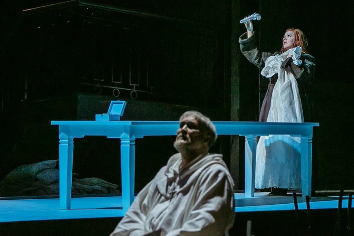 Drážďanský operní dům si ke spolupráci přizval režiséra Keitha Warnera, s jehož prací se mohla Praha seznámit díky provedení Straussovy Elektry ve Státní opeře před několika málo lety. Uznávanému britskému umělci, jež se narodil roku 1956, byl kromě Julie Müer (scéna), Tilo Steffense (kostýmy) a Wolfganga Göbbela (světlo) dopřán i ten komfort, že do své koncepce mohl též zařadit i nespočet skutečně živých a výrazně akčních vojenských scén, nad kterými dohlížel choreograf Ran Arthur Braun. Ten je specialistou na provozování těch nejvěrohodnějších a nejvíce strhujících bojových výjevů, jaké si jen lze představit. Tak si během večera plného překrásné italské hudby, která je protkána tíhou smrti a přesycena tragikou osudů hlavních hrdinů, přijde na své i posluchač, jež očekává i něco více, než „jen“ krásný hudební zážitek. Ani dokonale useknutá ruka ovšem z večera neudělá umění, po kterém toužíme, a tak se konečně dostáváme k hlavním protagonistům, pěvcům, kteří měli tu čest, být součástí scén doprovázených Verdiho vznešenou hudbou a zazpívat si úchvatné melodie, které v hlavě tohoto italského génia vznikly.
