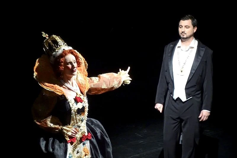 Představení začalo tak, jak je v poslední době v Košicích zvykem – ukrajinskou hymnou v podání divadelního orchestru a sboru. Ano, Košice jsou ruskému vpádu na Ukrajinu mnohem blíž než Praha a přitom jsme, jak dobře víme, pocitově na téže lodi… Opera Roberto Devereux je z roku 1837, z doby, kdy Gaetana Donizettiho postihly velké rodinné tragédie. Na opeře, kterou považujeme za jednu z jeho nejlepších, to zajisté zanechalo stopy. Předehru k opeře zahráli košičtí v o rok mladší pařížské verzi, která začíná citátem anglické hymny God save the Queen.