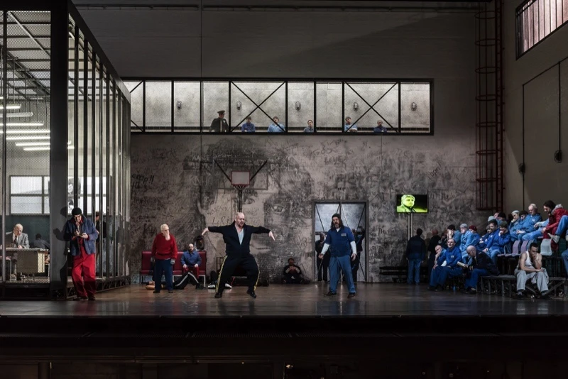 V nové inscenaci Z mrtvého domu, kterou uvedla Royal Opera House Covent Garden v březnu (poprvé za 90 let od vzniku opery), se děj odehrával v tělocvičně věznice amerického typu. Na jevišti se objevil už před předehrou mladý vězeň, patrně afrického původu; krátil si dlouhou chvíli hraním basketbalu a opakovaně se snažil strefit se do koše, umístěného vzadu. Vlevo byla jednopodlažní zasklená budova pro vedení, vpravo několik řad sedadel pro přihlížející vězně; scénický návrh nijak nenaznačoval sibiřskou trestnici Janáčkova libreta, popřípadě sovětský gulag minulého století nebo soudobou ruskou věznici. Polský režisér Krzystof Warlikowski, který inscenací v ROH debutoval, umístil příběh záměrně mimo Rusko, do jakéhosi univerzálního vězení.