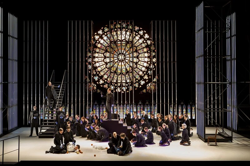 Belgická inscenace Židovky (koprodukce s Nationaltheater v Mannheimu) velmi mile překvapila a to je zásluha dobře zvoleného týmu tvůrců, včetně obsazení. Nás musí potěšit, že hudebního nastudování se ujal Tomáš Netopil. Peter Konwitschny je ‚éminece grise‘ německé divadelní režie, proslavil se zejména režiemi oper Wagnera a Janáčka. Konwitschny vyloučil všechny bombastické scény, které doprovázejí francouzskou ‚velkou operu‘ a zvolil si naopak jednoduché srozumitelné detaily, jako modré rukavice pro křesťany a žluté pro židy. Skvěle vyzněl sborový závěr 3. dějství v muniční továrně, kde zaměstnanci u běžícího pásu v hudební rytmické synchronizaci sestavují bombové řemeny. V důležitých pasážích opery nechal jak sólisty, tak i sboristy hrát v hledišti, dokonce i mezi řadami s posluchači. Johannes Leiacker navrhnul působivou výpravu a současné kostýmy. Základ tvoří hliníkové mříže, které se dají rychle přemístit a tím také vědomě omezují volnost některých postav. Dominantní je v pozadí scény umístěné velké vykládané okno, jakoby právě přenesené z katedrály.
